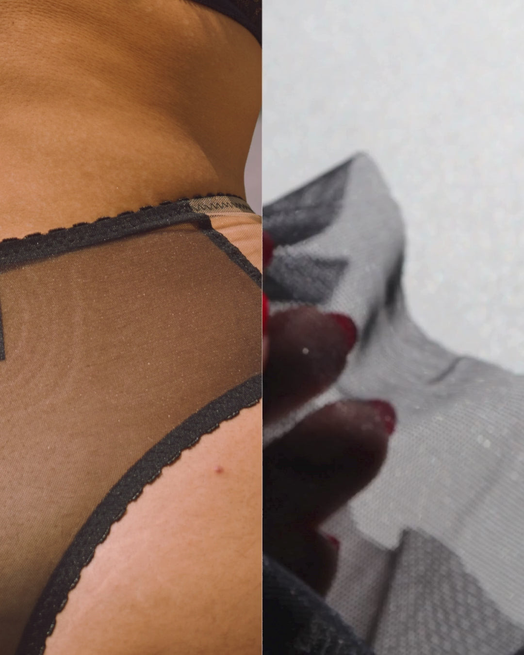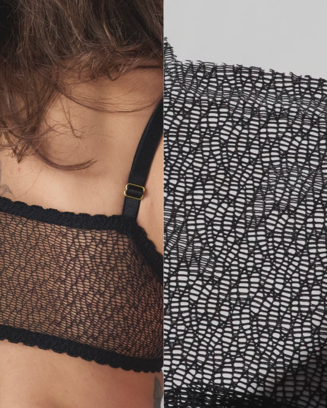 - Black lace. Learn more about the sustainable materials of your garments.